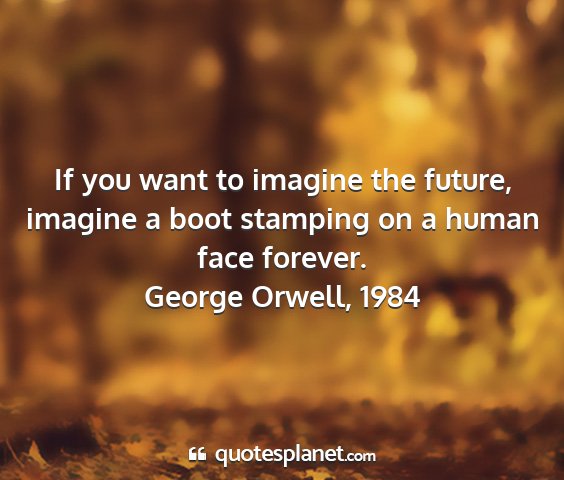 If you want to imagine the future, imagine a boot stamping on a human face forever.George Orwell, 1984