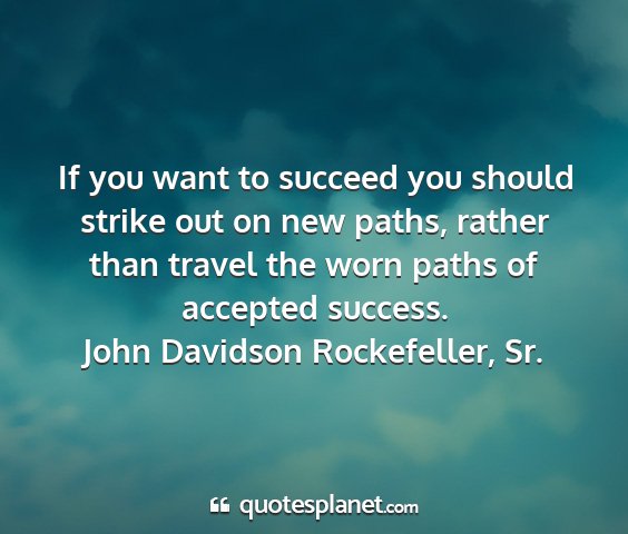 If you want to succeed you should strike out on new paths, rather than travel the worn paths of accepted success.John Davidson Rockefeller, Sr.