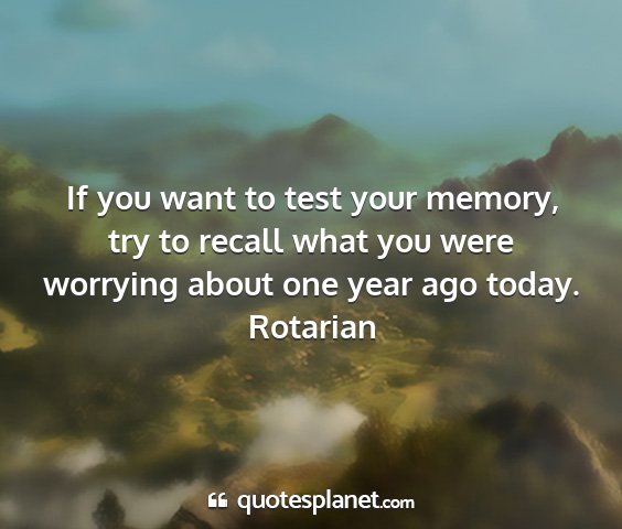If you want to test your memory, try to recall what you were worrying about one year ago today.Rotarian