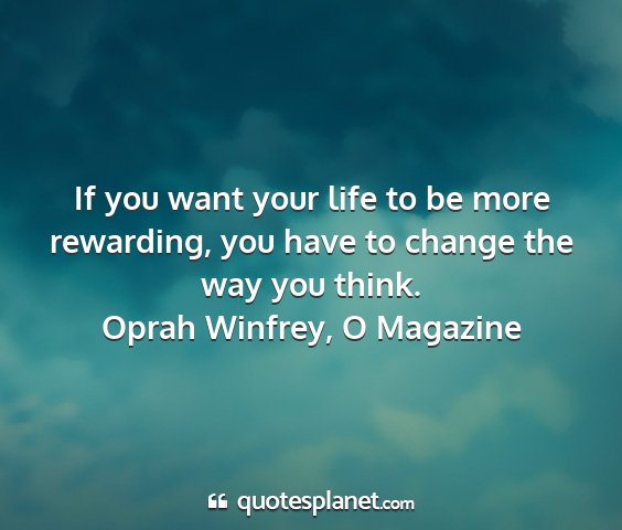 If you want your life to be more rewarding, you have to change the way you think.Oprah Winfrey, O Magazine
