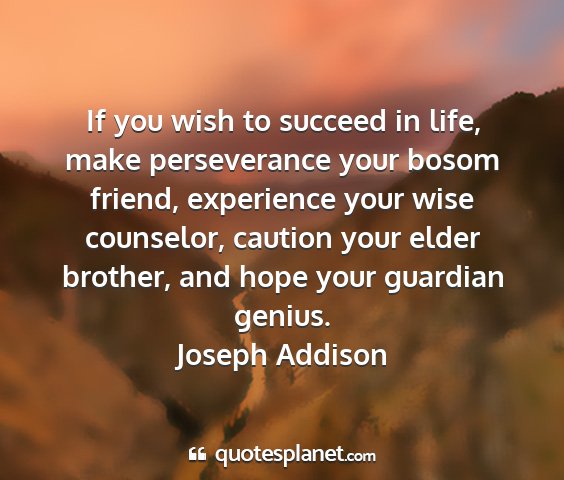 If you wish to succeed in life, make perseverance your bosom friend, experience your wise counselor, caution your elder brother, and hope your guardian genius.Joseph Addison