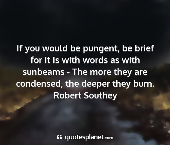 If you would be pungent, be brief for it is with words as with sunbeams - The more they are condensed, the deeper they burn.Robert Southey