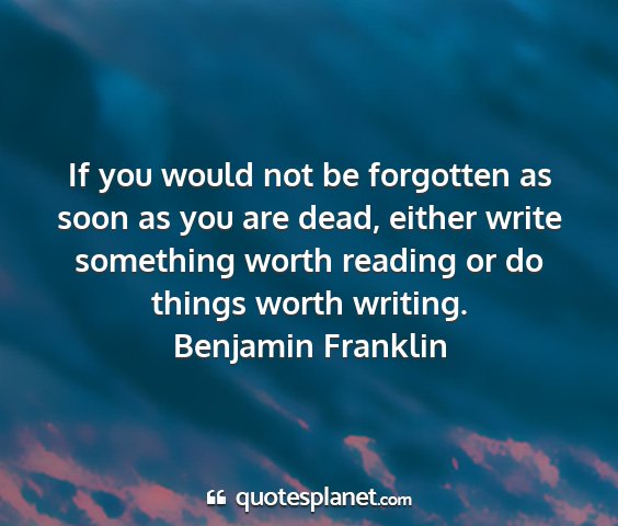 If you would not be forgotten as soon as you are dead, either write something worth reading or do things worth writing.Benjamin Franklin