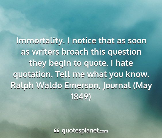 Immortality. I notice that as soon as writers broach this question they begin to quote. I hate quotation. Tell me what you know.Ralph Waldo Emerson, Journal (May 1849)