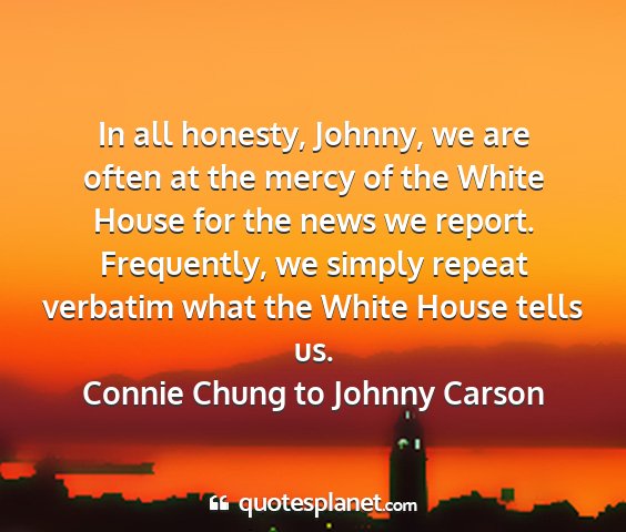 In all honesty, Johnny, we are often at the mercy of the White House for the news we report. Frequently, we simply repeat verbatim what the White House tells us.Connie Chung to Johnny Carson