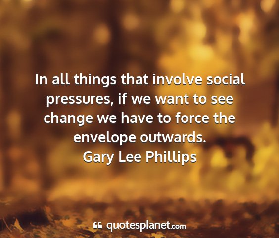 In all things that involve social pressures, if we want to see change we have to force the envelope outwards.Gary Lee Phillips