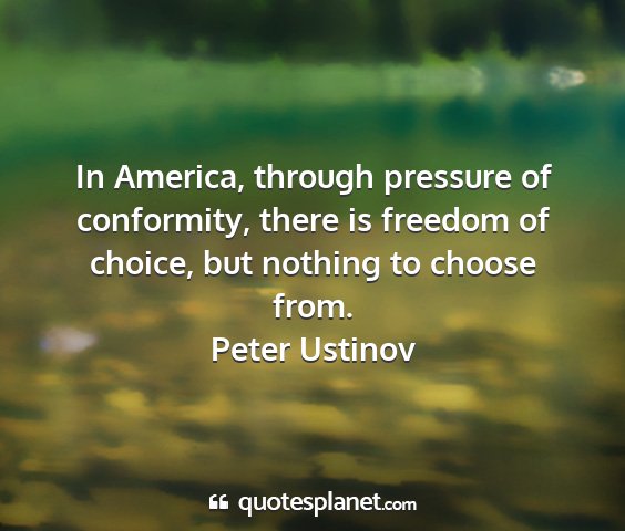 In America, through pressure of conformity, there is freedom of choice, but nothing to choose from.Peter Ustinov