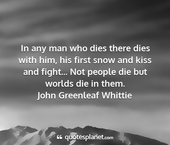 In any man who dies there dies with him, his first snow and kiss and fight... Not people die but worlds die in them.John Greenleaf Whittie