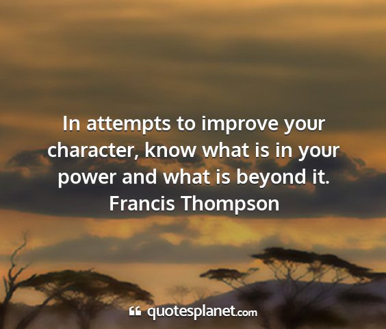 In attempts to improve your character, know what is in your power and what is beyond it.Francis Thompson