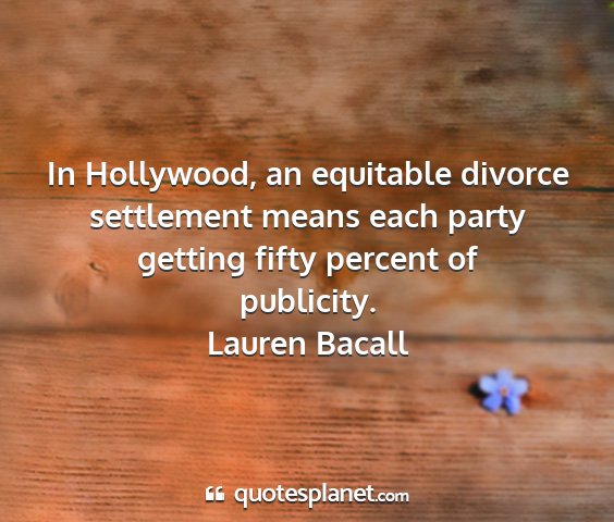 In Hollywood, an equitable divorce settlement means each party getting fifty percent of publicity.Lauren Bacall