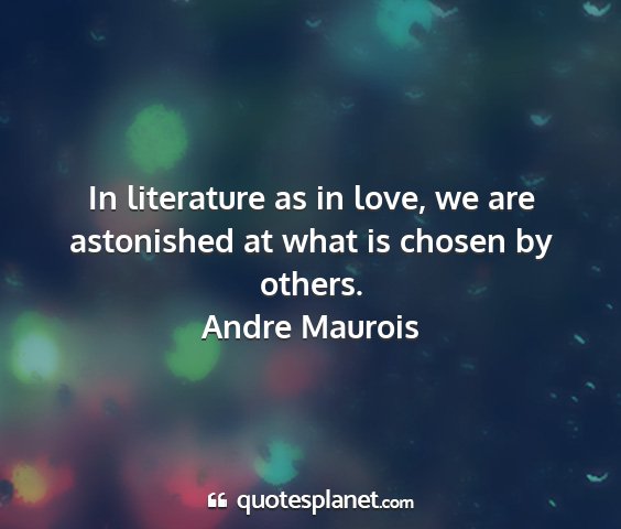 In literature as in love, we are astonished at what is chosen by others.
