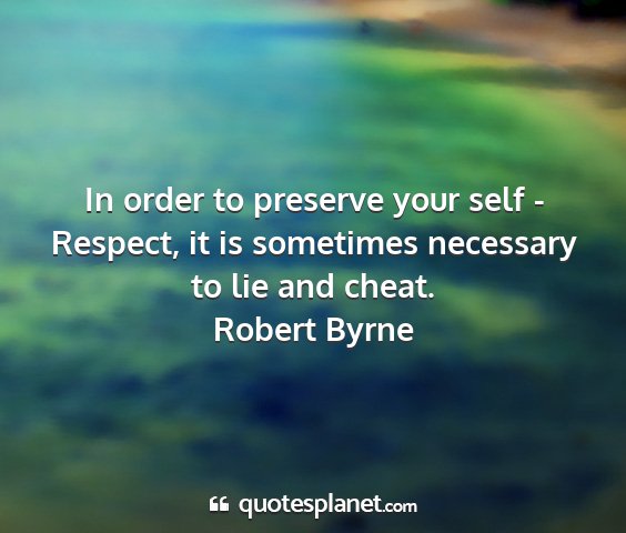In order to preserve your self - Respect, it is sometimes necessary to lie and cheat.