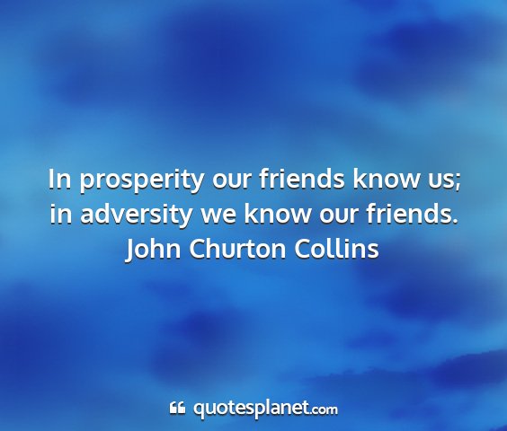 In prosperity our friends know us; in adversity we know our friends.
