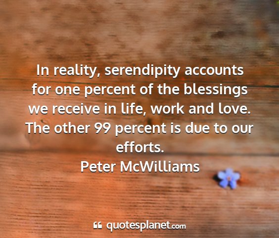 In reality, serendipity accounts for one percent of the blessings we receive in life, work and love. The other 99 percent is due to our efforts.Peter McWilliams