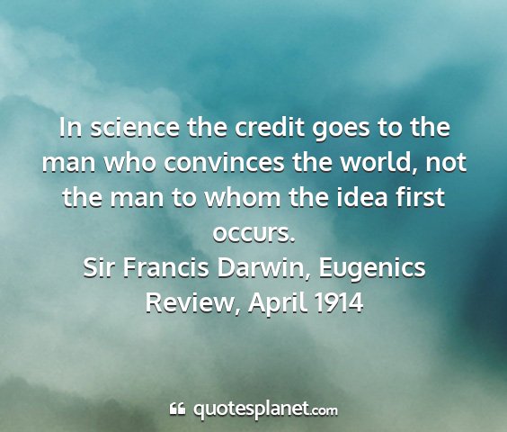 In science the credit goes to the man who convinces the world, not the man to whom the idea first occurs.Sir Francis Darwin, Eugenics Review, April 1914