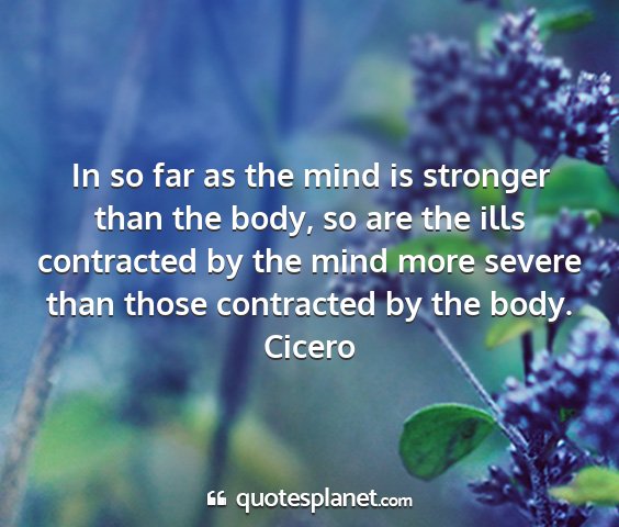 In so far as the mind is stronger than the body, so are the ills contracted by the mind more severe than those contracted by the body.Cicero