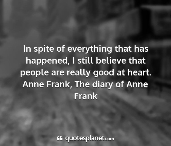 In spite of everything that has happened, I still believe that people are really good at heart.Anne Frank, The diary of Anne Frank