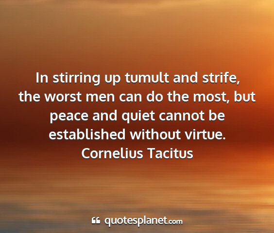 In stirring up tumult and strife, the worst men can do the most, but peace and quiet cannot be established without virtue.Cornelius Tacitus