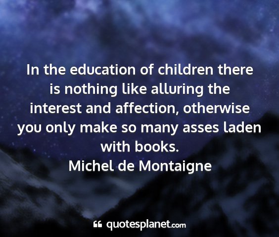 In the education of children there is nothing like alluring the interest and affection, otherwise you only make so many asses laden with books.Michel de Montaigne