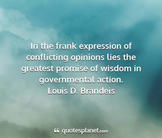 In the frank expression of conflicting opinions lies the greatest promise of wisdom in governmental action.Louis D. Brandeis