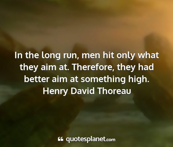 In the long run, men hit only what they aim at. Therefore, they had better aim at something high.Henry David Thoreau