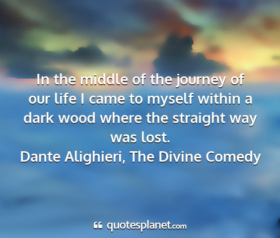 In the middle of the journey of our life I came to myself within a dark wood where the straight way was lost.Dante Alighieri, The Divine Comedy