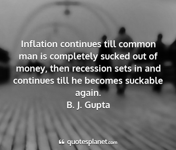 Inflation continues till common man is completely sucked out of money, then recession sets in and continues till he becomes suckable again.B. J. Gupta
