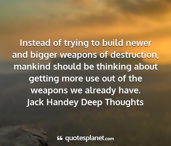 Instead of trying to build newer and bigger weapons of destruction, mankind should be thinking about getting more use out of the weapons we already have.Jack Handey Deep Thoughts