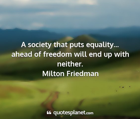 A society that puts equality... ahead of freedom will end up with neither.