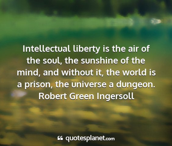 Intellectual liberty is the air of the soul, the sunshine of the mind, and without it, the world is a prison, the universe a dungeon.Robert Green Ingersoll