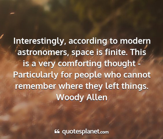 Interestingly, according to modern astronomers, space is finite. This is a very comforting thought - Particularly for people who cannot remember where they left things.Woody Allen