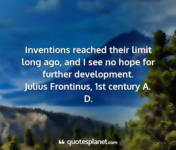 Inventions reached their limit long ago, and I see no hope for further development.Julius Frontinus, 1st century A. D.