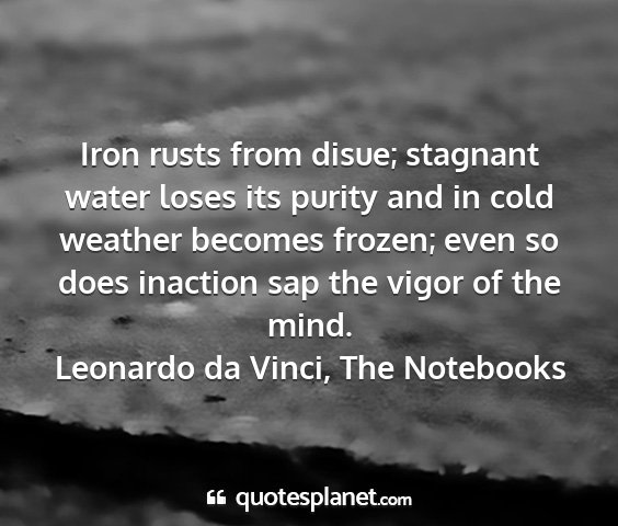 Iron rusts from disue; stagnant water loses its purity and in cold weather becomes frozen; even so does inaction sap the vigor of the mind.Leonardo da Vinci, The Notebooks