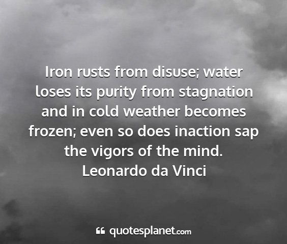 Iron rusts from disuse; water loses its purity from stagnation and in cold weather becomes frozen; even so does inaction sap the vigors of the mind.Leonardo da Vinci