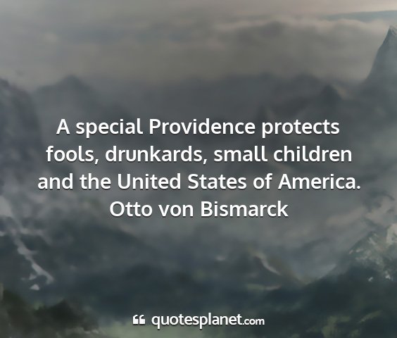 A special Providence protects fools, drunkards, small children and the United States of America.Otto von Bismarck