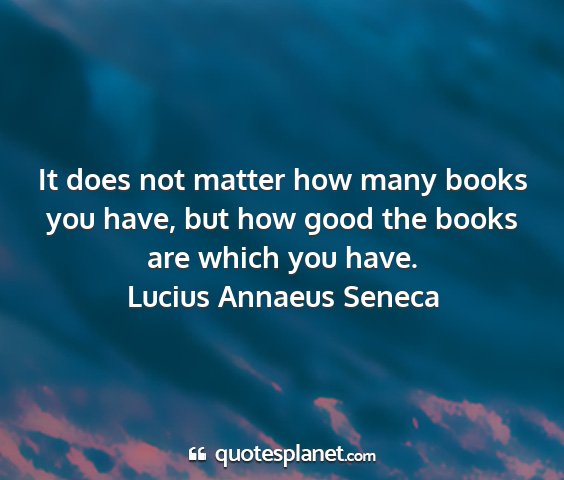 It does not matter how many books you have, but how good the books are which you have.Lucius Annaeus Seneca