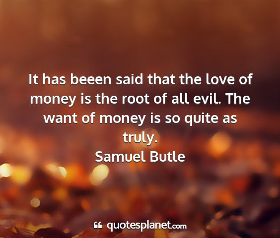 It has beeen said that the love of money is the root of all evil. The want of money is so quite as truly.Samuel Butle