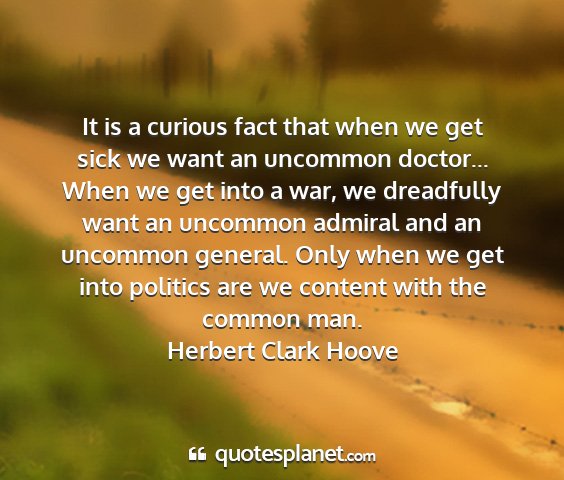 It is a curious fact that when we get sick we want an uncommon doctor... When we get into a war, we dreadfully want an uncommon admiral and an uncommon general. Only when we get into politics are we content with the common man.
