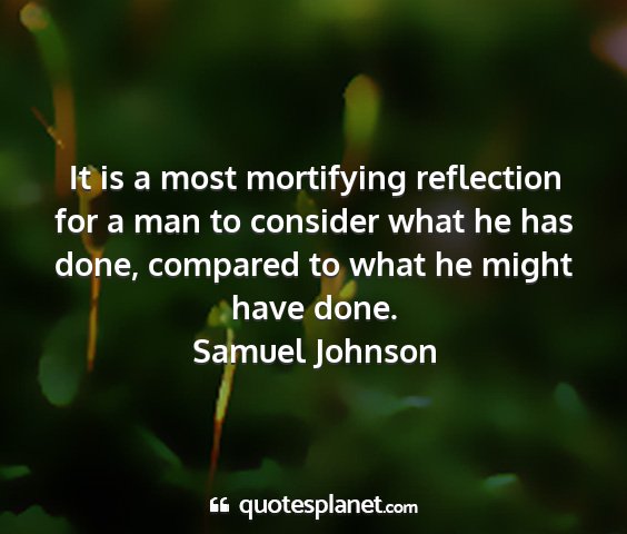 It is a most mortifying reflection for a man to consider what he has done, compared to what he might have done.Samuel Johnson