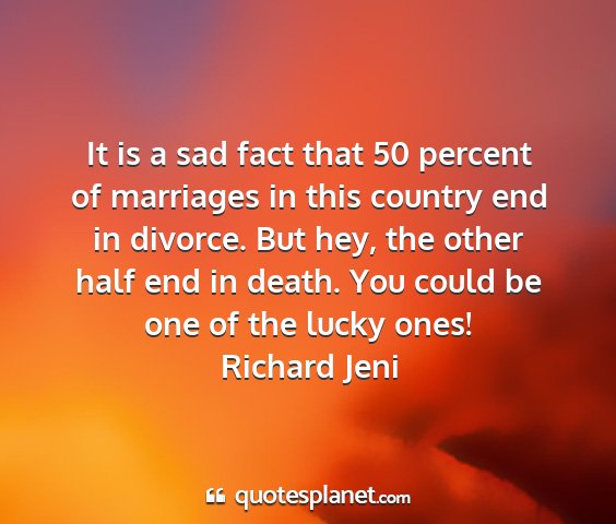 It is a sad fact that 50 percent of marriages in this country end in divorce. But hey, the other half end in death. You could be one of the lucky ones!Richard Jeni