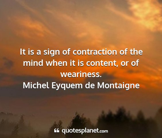 It is a sign of contraction of the mind when it is content, or of weariness.Michel Eyquem de Montaigne