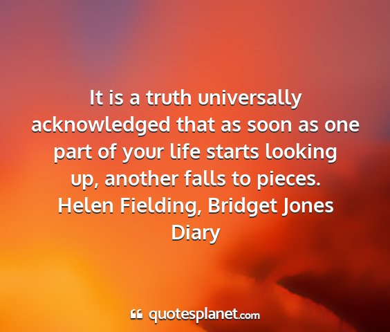 It is a truth universally acknowledged that as soon as one part of your life starts looking up, another falls to pieces.Helen Fielding, Bridget Jones Diary