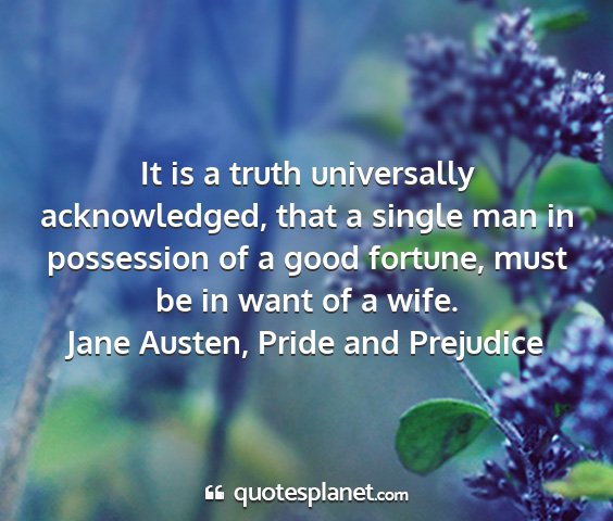 It is a truth universally acknowledged, that a single man in possession of a good fortune, must be in want of a wife.
