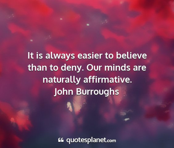 It is always easier to believe than to deny. Our minds are naturally affirmative.