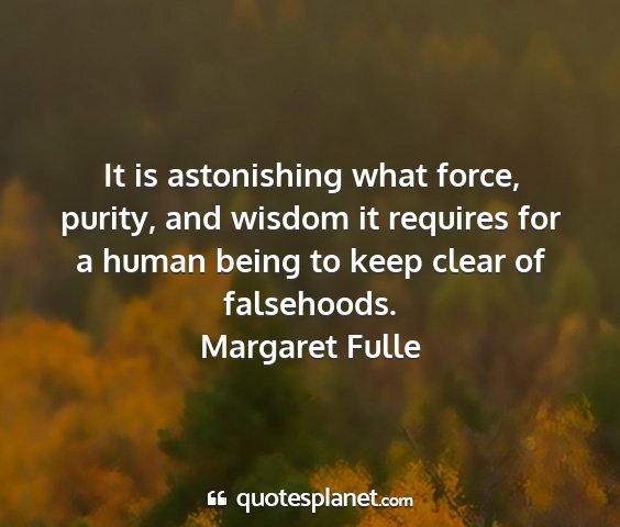 It is astonishing what force, purity, and wisdom it requires for a human being to keep clear of falsehoods.Margaret Fulle