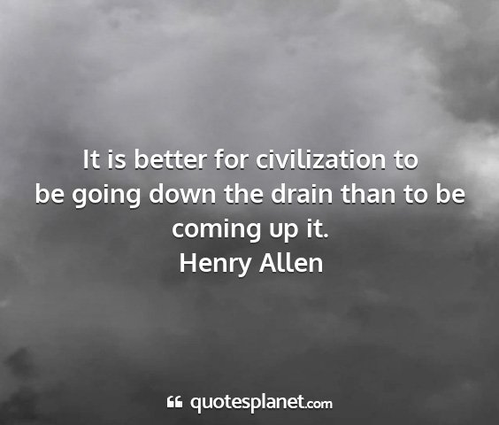 It is better for civilization to be going down the drain than to be coming up it.