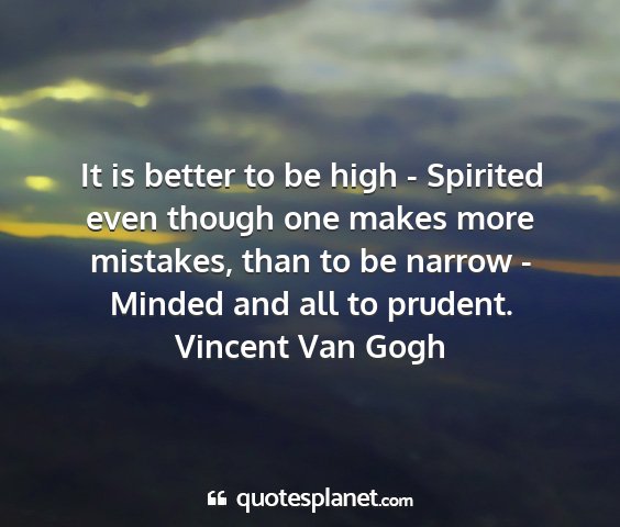 It is better to be high - Spirited even though one makes more mistakes, than to be narrow - Minded and all to prudent.Vincent Van Gogh