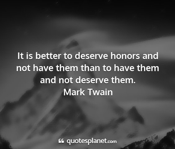 It is better to deserve honors and not have them than to have them and not deserve them.