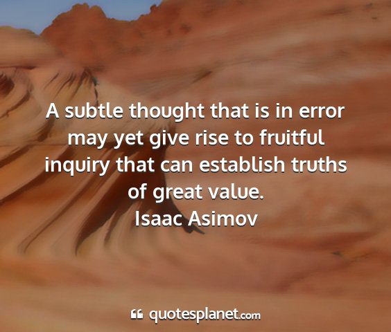 A subtle thought that is in error may yet give rise to fruitful inquiry that can establish truths of great value.Isaac Asimov