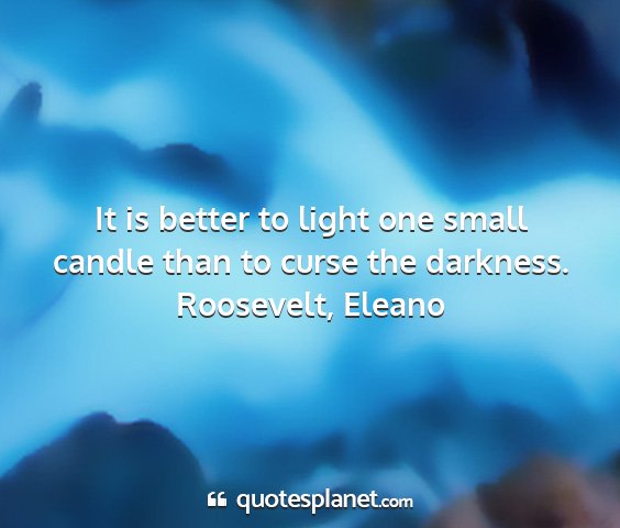 It is better to light one small candle than to curse the darkness.